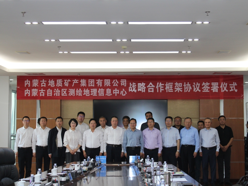 地質礦產(chǎn)集團黨委委員、副總經(jīng)理劉建勛和測繪地理信息中心黨委委員、副主任李鎖樂代表雙方簽署了戰(zhàn)略合作框架協(xié)議。此次合作重點聚焦建立健全項目建設統(tǒng)籌協(xié)調機制、大力推進數(shù)據(jù)資源共享、聯(lián)合開展科技創(chuàng)新和技術標準融合研究等關鍵內(nèi)容,雙方共同構建并穩(wěn)固了長期有效的合作機制,旨在通過發(fā)揮事業(yè)單位科研能力和資源優(yōu)勢,發(fā)揮企業(yè)專業(yè)化和技術優(yōu)勢,在基礎測繪、衛(wèi)星遙感、林業(yè)草原、礦山監(jiān)測等業(yè)務領域加強合作,促進技術、成果與服務共建共享,優(yōu)勢互補,共同推進,為建設內(nèi)蒙古智慧礦山、云上礦山和空天立體礦山監(jiān)管體系和監(jiān)測服務體系提供測繪地理信息支撐服務。